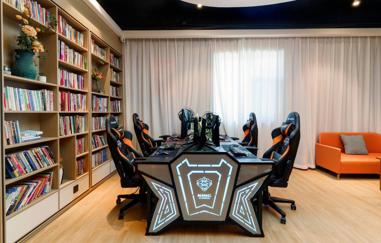 电脑配置最新,CPU和显卡都是最新版,客房干净卫生,装修风格活泼。网速很快,挺不错的😁