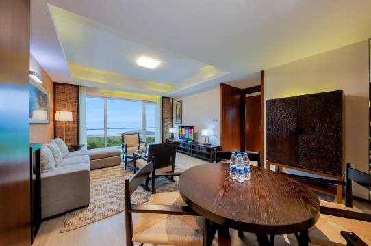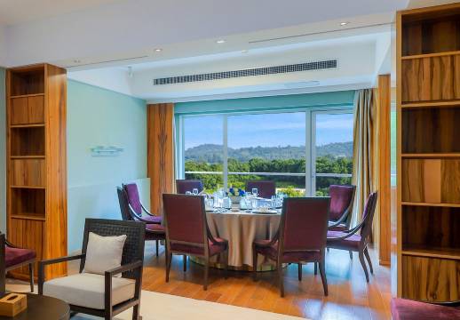 酒店拥有观山与揽湖的奢阔客房,面积55~108平方米的高级山景房和豪华湖景房,采用落地窗大阳台设计,湖光山色一览无遗。