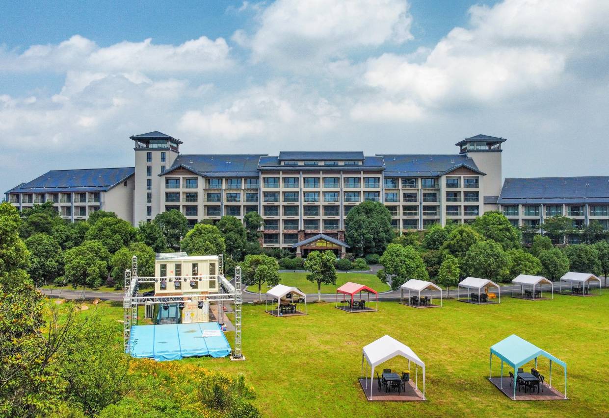 酒店配置多功能会议室、草坪大舞台、露营音乐Party、帐篷烧烤、水上运动、儿童游乐等设施,秉承“度假休闲、亲近自然、舒适放松”的理念,是团建会务、家庭亲子、组团游玩的理想目的地。
