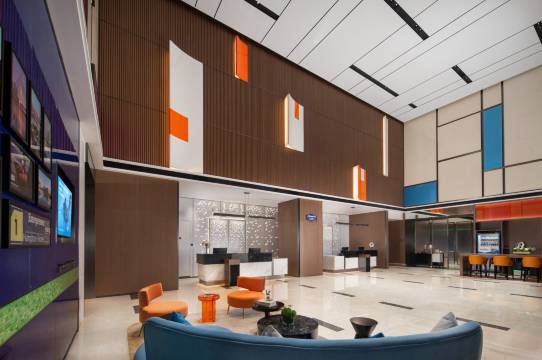 酒店位置很好,对面是一个湿地公园,适合散步环境很好。窗外夜景很漂亮。周边还有博物馆,商场,很便利。房间干净,床品舒适,设施设备齐全,体验很好。前台周周和波波服务热情周到,还送了小礼品。大厅有可以自取的饮料,咖啡和曲奇饼干,味道也好。早餐味道不错。下次过来还会选择这里。