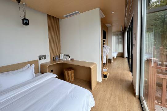 环境也很好!酒店在山上,房间是太空舱的样子(小朋友和大人应该都会喜欢)里面是大大的落地窗,非常干净,在屋里就可以一览群山!(多说无益,看图吧!)