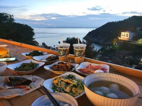 民宿还有各色吃喝。餐厅有早午晚餐夜宵,主供时令海鲜和家常菜,让您能既品尝到地道的海岛美食,又可以在这小岛上感受到家的温暖。