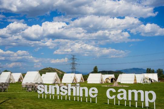 阳光郡度假酒店坐落于怀来县官厅湖北岸阳光郡度假区内,风景秀丽,山水怡人。年均优良天数达300天以上; 负氧离子含量高于北京市中心40倍,夏季凉爽,平均温度不超过30℃,比北京低3-5℃。野生植物高达318种, 野生鸟类多达192种,蕴含丰富地热,水温高达84-95 ℃。度假区内有叠拼别墅客房与野奢帐篷客房。家庭出游、公司团建、朋友聚会简约不简单,上叠观湖、下叠听岚。无需修饰,山水自带温柔。度假聚会,此处陶醉。野奢露营帐篷离山湖很近,距星辰不远。一间帐篷,两个人,一窝篝火,几句情话。浪漫可以浓烈,亦可清淡。酒店配有室内业主餐厅:主打官厅湖炖鲜鱼、家常菜、商务宴请等,食材严选,自营农场提供。户外40°N餐厅:露营美食、怀来特色烧烤,选用羊肉均为本地农户自养,食五谷鲜草,肉质鲜美娇嫩。 独特的地理位置,官厅湖畔,于长城翘首相望,毗邻蚩尤逐鹿中原古战场,东有北京延庆国家高山滑雪中、北京万科石京龙滑雪场、龙庆峡、康西草原、卧牛山旅游区、太师庄赛马场、天漠影视基地;西近涿鹿黄帝城、黄龙山庄、鸡鸣古驿站;南邻国家湿地公园、尼斯温泉、怡馨苑温泉、帝曼温泉、永定河峡谷漂流、东灵山空中草原;土木事变旧址、大海沱原始森林、古崖居、松山原始森林公园。您“闲居独处”,可“云游四方”。