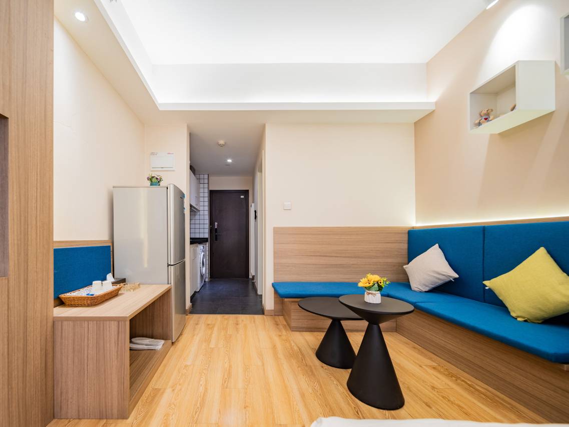 公寓采用刷卡门禁、电梯定向系统,24小时无死角安保,客房内置可视对讲一键呼叫系统,F一层有健身会所(游泳、健身、瑜伽、氧吧等等),配备专用停车场,商业、生活配套齐全,只将您对生活的美好憧憬,赋以更具体的诠释!此外,无论短暂的停留亦或长久的居住,这里也是胶己人的私人行馆!欢迎来品尝潮汕功夫茶!