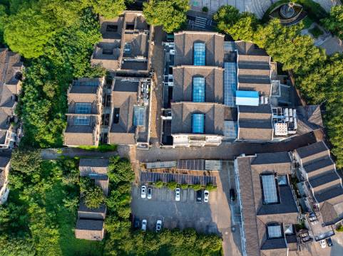 建筑特色鲜明,“酒店本身就是历史建筑”,和广肇公所、包氏钱庄(清末民初)在内部相连。“广肇公所”,其实就是广东、肇庆商人旅居之处。1912年10月,孙中山先生辞去临时大总统后到镇江考察时,就下榻广肇公所,在此与地方人士共商整治长江、建设镇江港等实业发展计划,题赠“通商惠工,以立民国”。在酒店里闲逛的时候不仅领略了民国时期建筑中西合璧的风格,看到“旧为新用”的巧妙用心(如加装电梯等),也从“孙中山和镇江”这个角度,补了一段近代史。