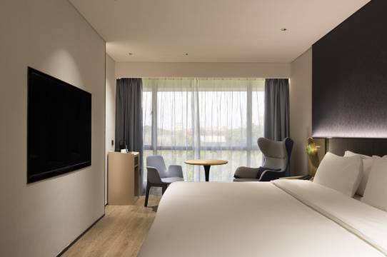 本店位于东莞市莞城区鳒鱼洲文创园区域,毗邻东江江畔,有着得天独厚的地理位置和优势,园区内仍保留着70,80年代的文化底蕴。 酒店附近有莞城可园博物馆、万江下坝坊、工农八号创意园、万科东江之星,距离南城国贸、汇一城仅,东莞站、虎门高铁站、深圳宝安机场、广州国际白云机场、酒店周围生活设施完善有众多餐饮、休闲饮品店、出行便利,吃喝玩乐一应俱全。 本店地理位置佳,希望创造「自然感官主义风格」将当地文化特色和自然风景融入,是以“隐逸于市”为主题的高端酒店,周边绿树成荫、具有自然气息,酒店倡导贴心与质感兼具的服务态度,在每一个细节处给您更亲切的体验,能真实地为客人提供一个亲近自然的环境,使客人在入住酒店后可以享受到独特的体验。 酒店内部装饰雅致、臻于细节,拥有各类豪华客房共计多间,酒店客房内配套设施一应俱全,三秒热水淋浴花洒、智能家电、千兆光纤无缝接入、wifi覆盖。酒店同时配备地面停车场、智能机器人送物、中西自助式早餐厅、多功能会议室、自助洗衣房及宽敞的阅读会友书吧等配套,为您提供一个自在、放松、休憩、充电、会友的居停空间。同时自然、静谧、温暖、朴实的入住体验与您随行,是您商务及旅行出行的优质选择。