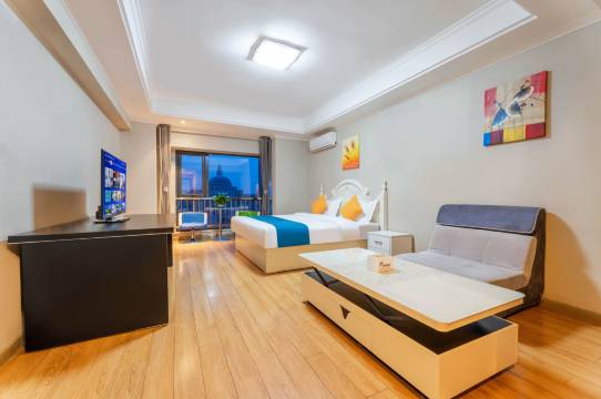 老板服务态度很热情,房间还是比较干净的,比很多公寓式的宾馆干净。性价比较高。床是比较软的那种,个人比较喜欢稍硬一点的,但是睡着还是舒服的。