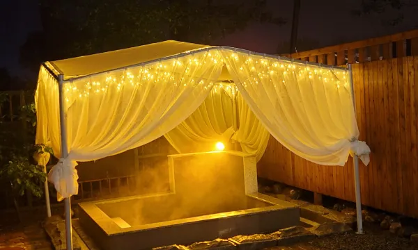 想国庆假期跟闺蜜聚聚,无意见刷到的一家温泉民宿,真的非常满意,工作人员很热情,还送了两个孩子小礼物,孩子们玩的特别开心,环境也很好,干净,卫生,我们定的四人间,一楼带凉亭,房间有泡池,特别适合带孩子旅行,朋友聚餐,庭院很安静,不吵闹,特别满意的一次旅行。