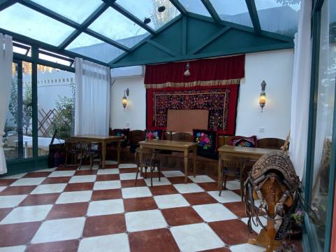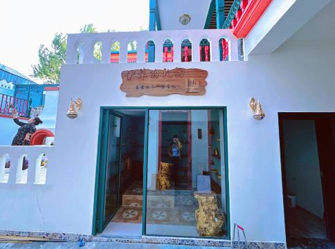 装修风格独特:蓝白相间的外墙、爬满蔷薇的拱门、铺满鹅*石的小径,每个角落都充满诗意;同时,巧妙地将维吾尔族、哈萨克族等民族元素融入现代设计之中,从地毯到木雕,从彩绘到织物,每一处细节都诉说着民族文化的故事。