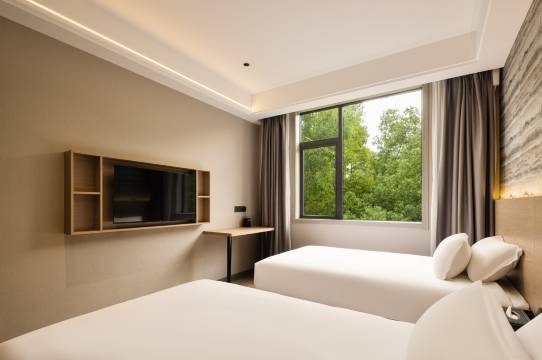 房间明亮宽敞整理,窗户很大,打开窗帘就是路上的树木,这边的空气很好,开始担心住临街吵,窗户是隔音玻璃,隔音效果好,附近很多美食,值得推荐,前台小姐姐很热情,我问题能及时解决,高铁站打车过来10块钱左右,也可以坐4路公交在北站下,去篁岭坐车步行3分钟,车费20元总之很方便。