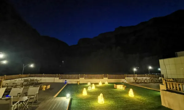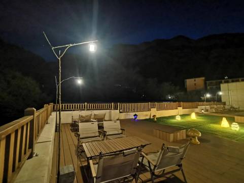 在景区算是很不错了,性价比也很高,这次赶着暑假 我们5个家庭带着孩子和老人一大家团聚在此!酒店门口还有歇脚聊天的地方 很惬意😌