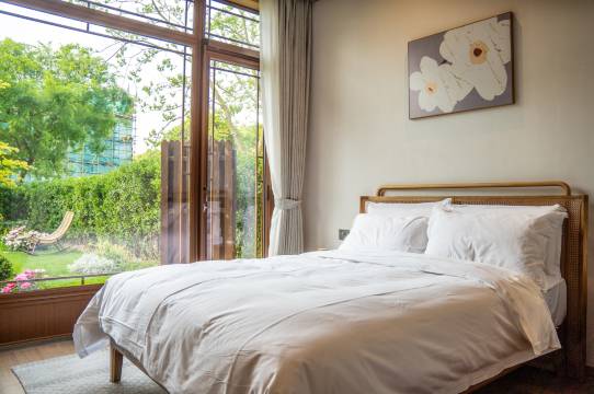 房间很大,有两个卧室,开门就是一个小的庭院,很幽静,适合家庭出游,野餐等。