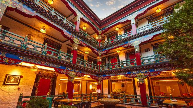 曾是尼泊尔领事馆,有400年历史沉淀,酒店内有老藏式廊柱、雕花窗等元素,庭院有百年老树,整体充满古色古香的藏式风情。