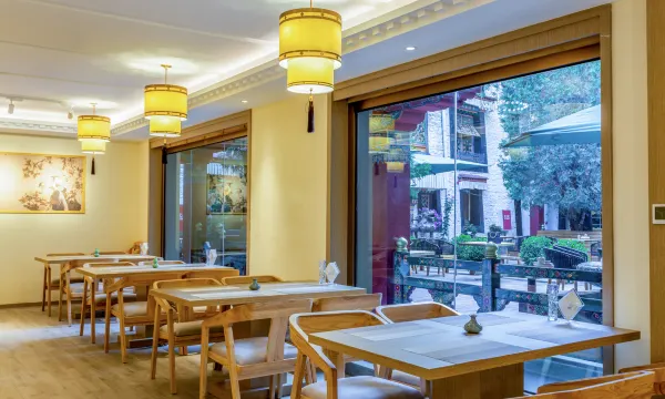 提供早餐(含糌粑、牦牛奶、藏式点心等)、20元自助午餐及藏餐、盖浇饭等晚餐选择;有三楼观景台、庭院、咖啡厅,可在此休憩赏景。