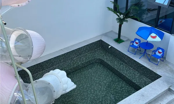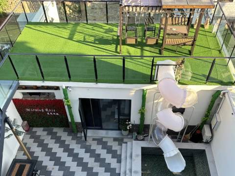 民宿内设施为智能化设施(马桶、窗帘),床垫选用优级独立布袋弹簧泰国高回弹乳胶床垫、恒洁智能马桶、美绮自动窗帘、网红悬浮窗(大部分)人下地灯亮、上床自动关;民宿设有儿童娱乐设施(滑梯、戏水池和秋千)、成人休闲茶室及自动麻将机,为您的休闲娱乐提供便利。