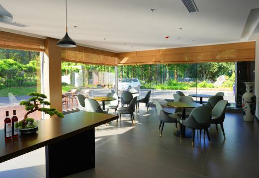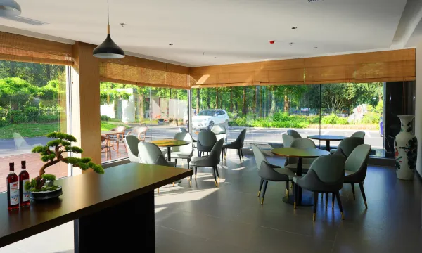房间卫浴区干湿分离,儿童拖鞋都有准备。大堂和休闲区有大大的落地窗,阳光洒进来特别舒服。我们在这儿吃早餐,娃能自己选喜欢的食物,还能在窗边看外面的树和车,全程乖乖的,下次来还住这个酒店