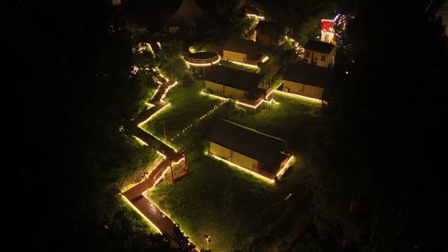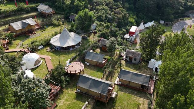 景区露营民宿,孩子体验感很棒👍🏻。店家人很热情,到景区接,而且送果盘、饮料、饮用水等,晚上还有驻唱,可以点烧烤送到房间,做景区大巴车也很方便。我们房间高点,坐在帐篷外边看着风景很棒!