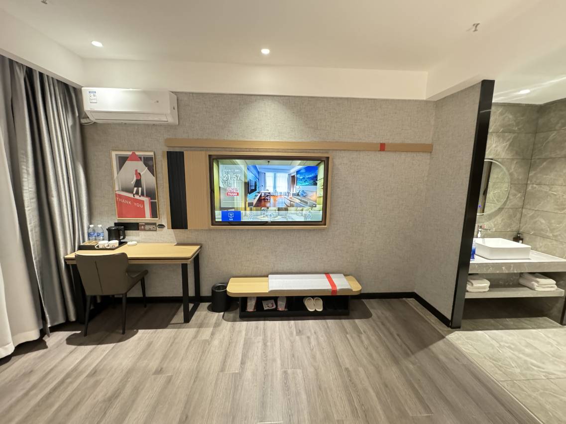 非常满意,有很多惊喜呀,首先进门,有小爱同学欢迎入住,这个价位竟然还配备一次性拖鞋,舟车劳顿了一天,终于可以让脚放松了,桌面还有茶包,对于爱喝茶的老公真是惊喜,浴室的沐浴露洗手液都很好用,浓度够不是很希的那种,床单很干净,楼下不远处就是夜市,可以体验烟火气,早餐有面食,炒饭,热菜,炝拌菜,粥,豆浆热腾腾,很干净,营养健康,非常可口,就是酒店新装修有一点点味道,可以到酒店提前开窗通通风就好了
