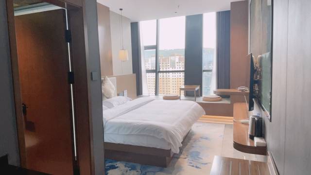 前台接待热情大方,客房干净整洁,设施完善,落地窗看夜景特别棒,还有免费早餐
