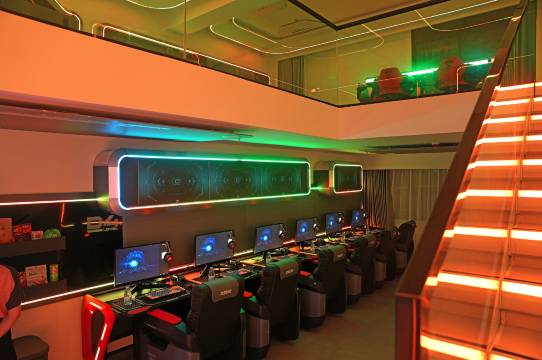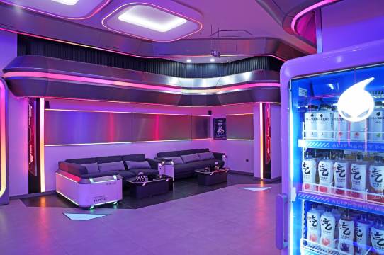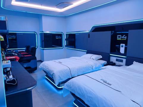 酒店将电子游戏娱乐、社交、竞技作为消费者运营核心,通过电竞元素与次元科幻的设计结合,将酒店空间、房内设施及设备进行了形态的完整融合,以现实还原的方式打造全景沉浸式的酒店空间,为消费者创造脱离现实的精神感受。电脑配置更是优中选优,让您的竞技游戏毫无压力,让玩家尽展电竞风采。酒店的团队年轻有活力,热情有礼,并且受过专业培训,搭配这样一个高端科幻的电竞酒店,是您娱乐的不二之选。