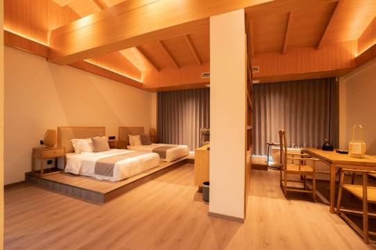 山居内有不同装修风格的温馨客房。分为两期打造建设。一期设有双床房、榻榻米房、亲子房、全景大床房等。二期分别设有双床房、大床房、大套房、loft套房等房型,均为带有阳台兼落地窗的景观房。 房间内均配有中央空调/地暖,全套洗护用品、干湿分离洗漱间等配置,配以优美的自然景观,让每一位入住者都有⼩隐于野的住宿体验。 民宿配套餐厅、KTV、茶室、会议室、棋牌室、游泳池等服务设施,贴心的服务与完备的配套设施可让每一位客人宾至如归。交通状况:上饶机场距玉琊山居驾车大约1小时23分;
