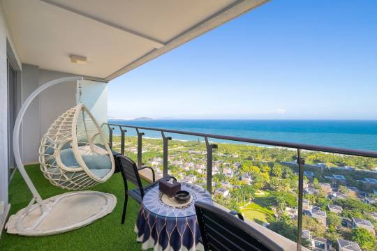 房间阳台直面大海,楼下就是大泳池,风景超绝,服务也很棒,每天有专业保洁打扫,屋内用品一应俱全,特别适合家庭亲子出游,孩子们玩的很开心!