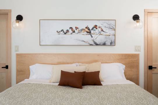 这个有着特色装修的木舍配备壁炉和加热地板,让您可以尽情放松享受。您的记忆海绵床垫床配有羽绒被。独享私人阳台。厨房配备了大冰箱、烤箱和炉灶。配备带卫星频道的 60 英寸智能电视,此外还可使用免费无线网络,方便您与朋友保持联系。