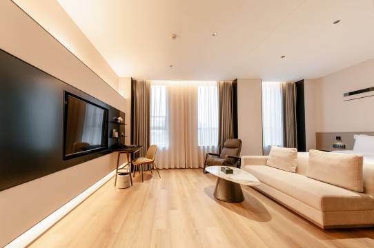 500块钱最好的酒店,没有之一。停车场免费,有快充和慢充。房间安静,电动窗帘,minibar免费,智能马桶,床非常舒适,上去了就不想下来,浴室的门设计成能见到脖子以上,但见不到脖子以下,有创意。电视能连接HDMI,牙刷的毛很密,浴巾很厚实。楼下就是山东菜饭馆,非常方便。前台热情,反应快,重视用户备注。这家酒店没有缺点。