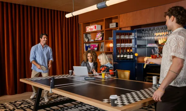 嘿!欢迎来到悉尼机场Moxy酒店——这家位于悉尼机场区域内的现代酒店,时尚别致,绝不平庸。这家酒店专为心态年轻的人打造,您一抵达就能感受到它的与众不同。在Moxy酒吧办理入住,您不仅能拿到房卡,还可获赠一杯免费的特色鸡尾酒。酒店客房采用智能设计,空间小巧精美,配备高速Wi-Fi、豪华睡床、宽敞的步入式淋浴间和Chromecast。从悉尼机场Moxy酒店出发,轻松探索邦迪海滩到歌剧院等众多标志性景点,我们的工作人员堪称专业的“城市向导”,您想知道什么,他们都有答案。或者,您也可以按自己的方式探索,发现 “属于您的悉尼”!另外,别忘了到我们悉尼机场酒店的时尚休闲酒廊,享受舒适惬意的时光。还可到我们的社交空间惬意欢聚,打一局乒乓球、滚球游戏的乐趣,或参加每日主题活动。
