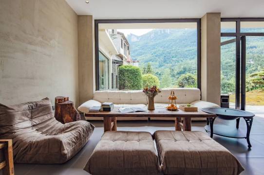 风与岚民宿近恩施大峡谷景区,交通便利,山林环绕,⻦语花香。大大的落地窗就可望⻅峡谷绝壁。民宿属于侘寂风格,描绘是的残缺之美,残缺包括不完善的、不圆满的、不恒久的,当然也可指朴素、寂静、谦逊、自然……它同佛教中的智慧一样,可意会不可言传,所以这个词用语言来表达时,有很广的包容性。