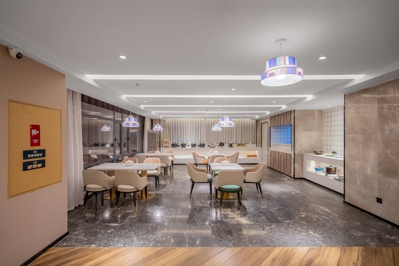 之后的一晚全是惊喜:虽然有电梯,前台小妹还是会送到房间;卫生打扫很干净,免费制氧,设施确实都是对标亚朵;电动窗帘、智能马桶;床垫、枕头、被子都很舒服,看得出来老板是用心挑选过的,第二天早晨特地看了下,发现竟然是羽绒被!天啊300+的房子竟然配的是羽绒被,这个着实有点感人了;早餐本来不抱希望,但没想到重庆师傅手艺非常好,简单的蛋炒饭和土豆丝都很美味,搭配的萝卜干豆腐乳等小菜也是有滋有味,还有一个简易的咖啡机,有水果。
