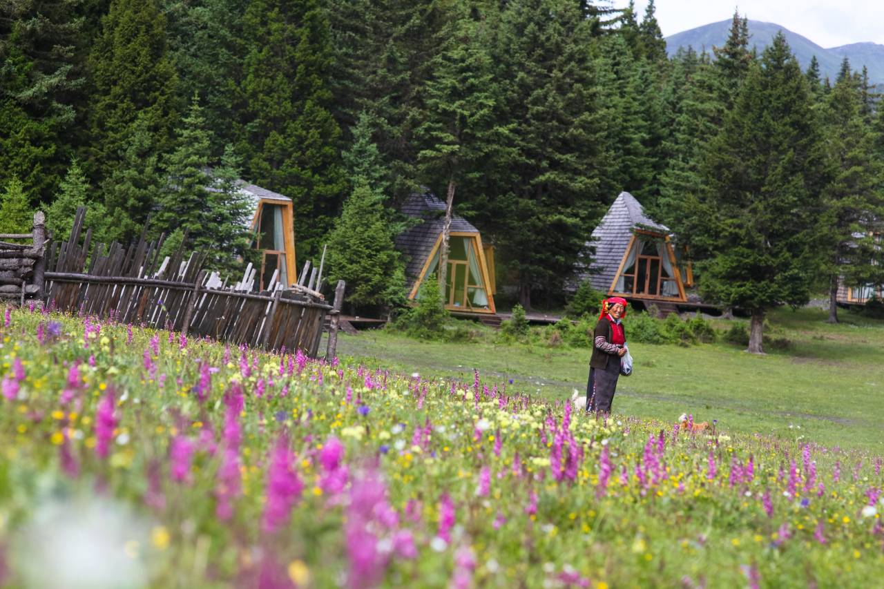 民宿座落于雪山脚下,原始森林旁。七栋几何造型的独栋小树屋和新藏式主楼遥相呼应,一边是掩映在丛林中,一边是倚靠在雪山脚下,在这里,您可以躺在床上便将雪山、森林、草地的画圈揽入眼帘,在这里,您可以远离喧嚣,进入童话之境。民宿还提供骑马、森林穿越、藏家家访、森林采摘等体验活动,品尝由米其林星厨为您精心设计的特色菜品。于此,您可以住在自然中,来一场回归静谧的心灵之旅。