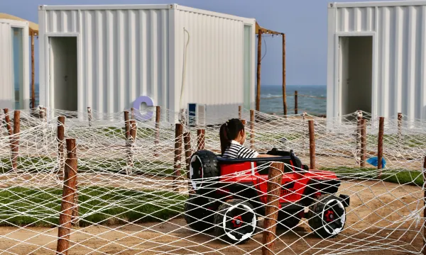 营地位于河北省秦皇岛市山海关区乐岛海洋王国旁,占地面积11700平方米,三面环海。营地以露营为主题,以落日橘子海为特色,涵盖露营、团建、亲子娱乐、聚会、餐饮、赶海、垂钓等丰富内容。共设置二十六间客房,三种房型,客人可拎包入住。 营地特色:营地三面观海无遮挡,早起观日出、傍晚赏日落晚霞,夜晚观星空。 营地交通:秦皇岛市内自驾30min;北京自驾3h左右 ;天津自驾3h左右 ;动车高铁火车至山海关站,15min即可到达营地。 营地停车:车辆可直达营地门口,营地自有停车场,车位充足,可免费停车。 营地配置: 每个房间内配套齐全,沙发、空调、热水壶、水杯、驱蚊液、花露水,浴巾、浴袍、一次性拖鞋、洗漱用品等。 独立干湿分离卫生间,提供24小时热水。 儿童娱乐有蹦床、秋千、越野车、沙滩排球、跷跷板、飞盘等。 其他娱乐项目有烟花共赏、露天电影、篝火星光摇摆舞会、露天KTV等 营地餐饮:自助烧烤、精美下午茶、咖啡、酒水。宠物友好:可携带宠物入住,自行处理宠物排泄物,预约时需说明宠物体型及犬种。 可自扎营位,房车可进入营地,提供水电。 使用明火需按营地要求在指定区域内使用。 慢下来,不用去远方,也能住进自然里,吹着海风,赏这橘子海,给生活更多放松,给自己更多值得,捕捉藏在海风里的小欢喜。