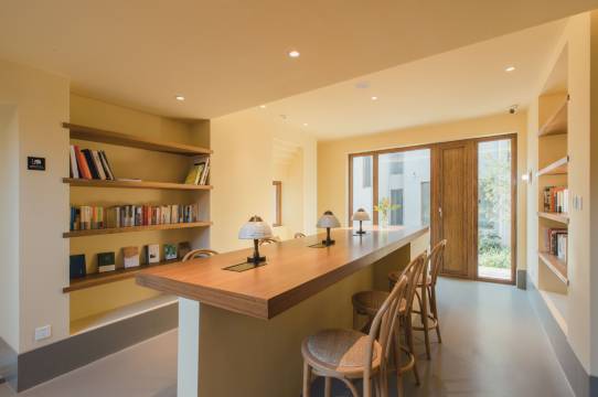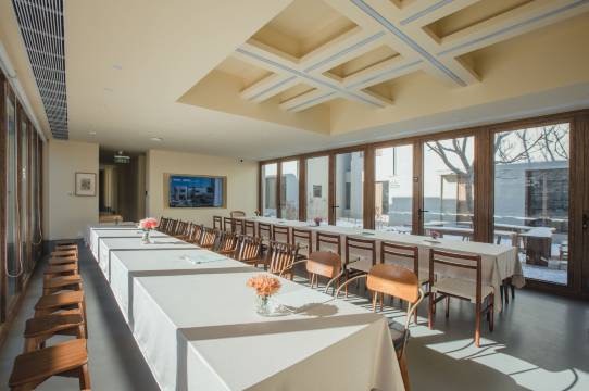 民宿一期是由8栋二层小楼合围而成的大院子,位于北京市延庆区国家高山滑雪中心山脚下,紧邻冬奥森林公园。山居北面是松山自然保护区和滑雪场,东面是玉渡山景区和石京龙滑雪场,西至辉煌高尔夫球场和古崖居,南眺官厅水库。拥有600平米的公共空间、40-70平米不等的房间和700平米的院落。充裕的公共空间规划有餐饮(供应早中晚餐、下午茶和酒吧小吃)、音乐会客厅(黑胶、钢琴、吉他、非洲鼓、古筝)、电影院、图书馆、壁炉客厅、零食市集、咖啡厅、酒吧、煮茶室、儿童活动区、商业或艺术展示展览空间等。山居由NOMOS ARCHITECTS设计事务所全面担当建筑和景观设计,项目设计团队均毕业于全球知名的伦敦大学巴特莱特建筑学院。山居所在村庄为苹果园围抱、周边有近100亩专业小轮车营地和长达1公里的小溪森林康养营地。房间配置泡池、2.4米超大床(可灵活改变为双床)、31cm厚的星级酒店床垫(金可儿)加布草和全套英国芳疗协会Aromatherapy Associates卫浴,原创木刻版画,房间名称定制中式陶瓷套杯。