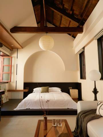 这次入住试住了两个房型:轻奢庭院大床房和露台大床房。露台大床房在二楼,私密性更大,除了有个小露台,还有个茶室。