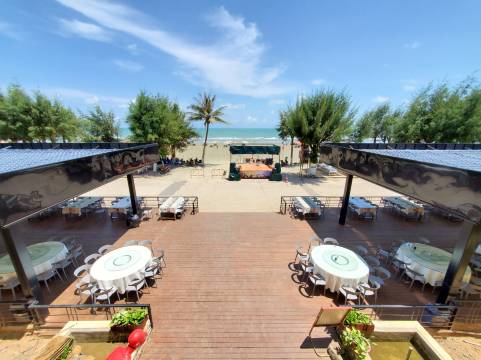 酒店无线WIFI全覆盖,商务会议设施完善,烧烤场、异域咖啡、茶吧、奇石馆、等休闲娱乐设施一应俱全。坐于沙滩长廊,宾客能远观山水交融、赏朝霞夕阳、海鸟起舞的自然风景,尽享一片生气盎然的异域风情。