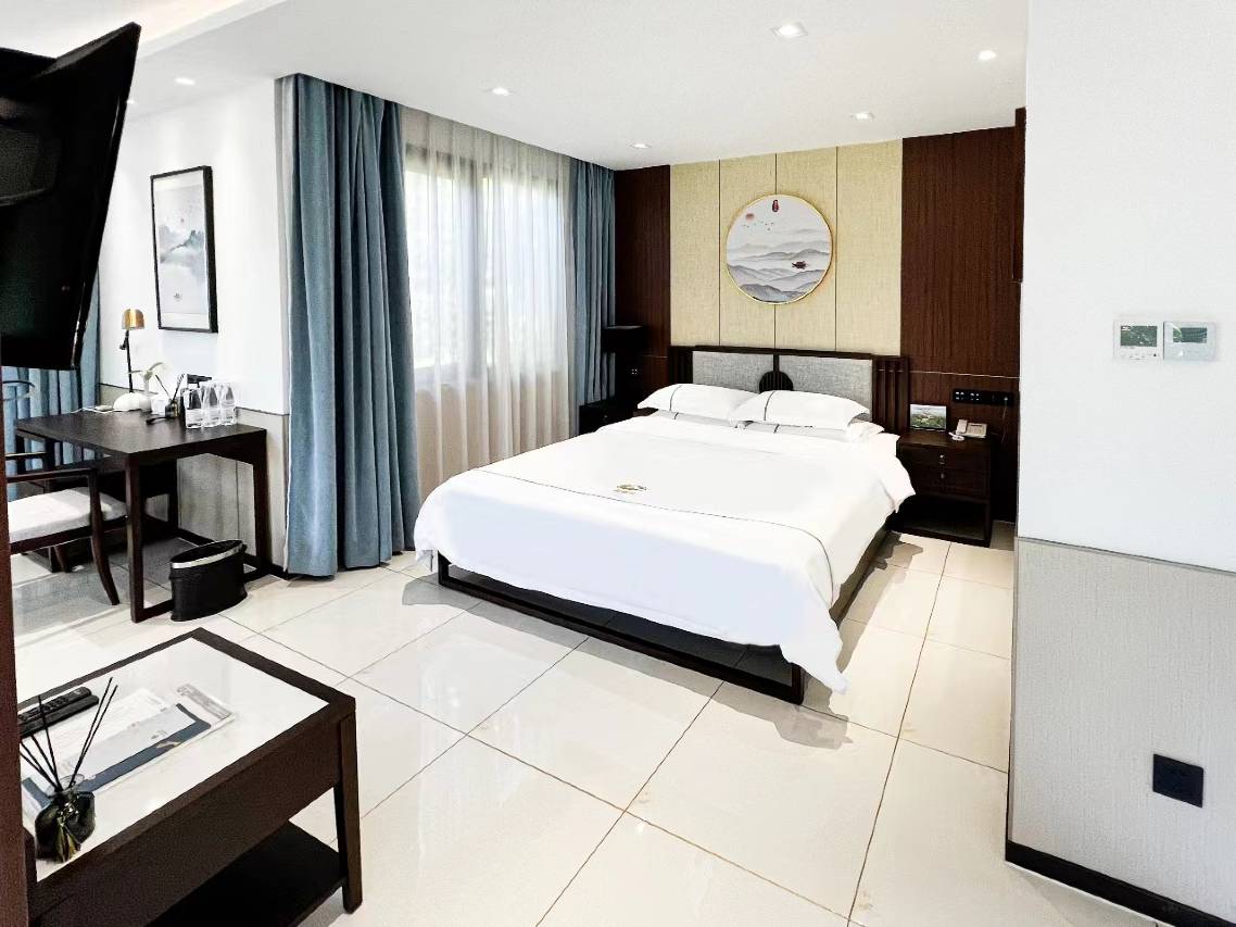 本店位于太极洞景区内,实现景和宿一体化,一栋一房,私家园林,环境优美,私密性好,拥有各类客房,其中有多间大床+榻榻米,方便携带小朋友一起度假游玩!独栋别墅独立大床房,带大浴缸,独立大阳台,全智能设备,房间平方宽敞大气,新中式风格,洗浴干湿分离!