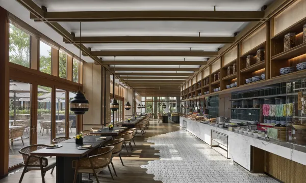 我入住的房间宽敞明亮,客房掩映于葱郁园林之中,房间宽敞明亮,设计清新雅致,落地窗将自然绿意引入室内,环境宁静优美。新中式的设计风格搭配暖色调原木,雅致又舒心。推开窗,满眼葱郁,阳台外就是园林景致。房间设施一应俱全,智能马桶、洁净舒适的床品,每一个细节都彰显着品质,清洁程度也无可挑剔。