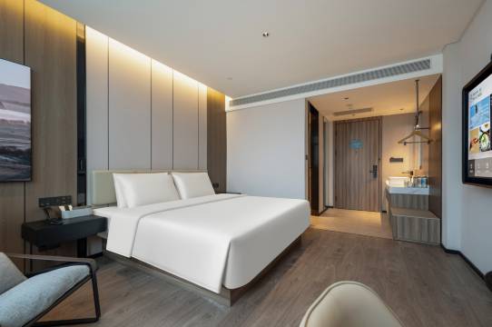 酒店位置便利),前台服务专业高效,大堂环境舒适有格调(香氛+绿茶🍵)。设施崭新,电梯极快,节省时间。房间隔音效果顶级,确保工作/休息不受干扰。🛏 床品高品质,保障睡眠。早餐丰富,补充能量。最惊喜的是前台主动提供的矿泉水服务(进出&退房),细节体现品质。整体体验高效、舒适、安静,极力推荐!