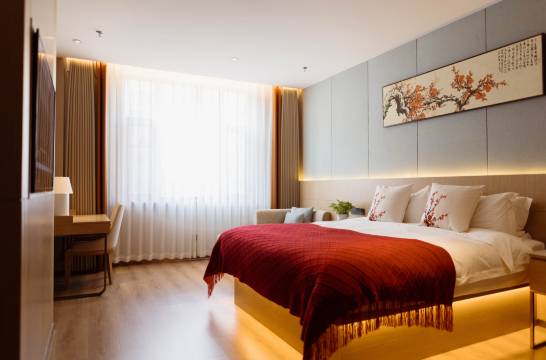 酒店在县城的靠北边,装修比较新,房间内是智能语音控制,床品比较干净,住着比较放心。早餐很不错,品种很丰富。