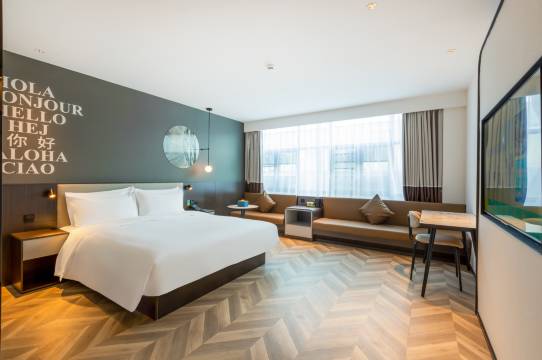 襄阳好风日,留醉与山翁。襄阳是一座充满历史韵味的英雄古城,本店坐落于高新区梦想小镇8号楼,汉江北路与关羽路交汇处。酒店客房采用喜临门零压床垫,为您的睡眠质量保驾护航。超大LED化妆灯,使您的出行美美哒。55寸超大液晶电视,即刻享受影音体验。酒店采用华掌柜及机器人送物服务,无接触送物,保障您的安全。大堂商务休息区,营造娴雅的社交氛围与小憩环境。另外酒店配备停车服务,使您的出行更便捷。酒店周边餐饮,商超,公园一应俱全,是您商务出行,旅游休闲的品质选择。