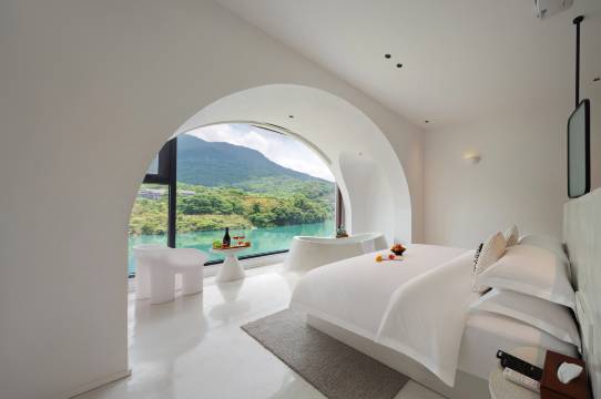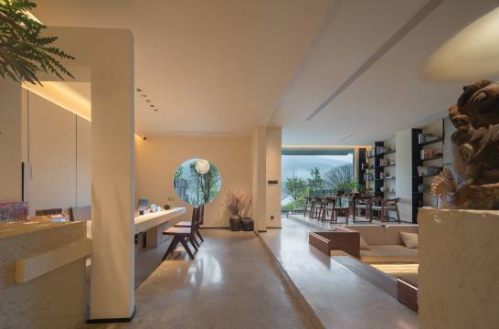 这家江景民宿真的太戳我!推窗就是青绿江面,圆窗框住流动的山水画卷,公区侘寂风松弛感拉满,房间智能卫浴质感高级,躺床上看江景发呆,彻底治愈了城市里的疲惫。