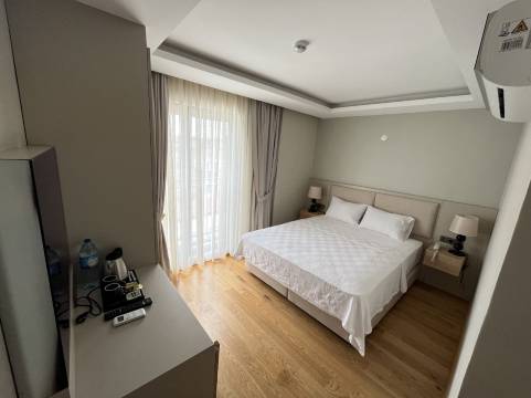 酒店位于Geyikli市中心,地理位置优越,房间干净整洁,员工友善热情。房间里的电视、空调、淋浴设施以及所有用品都品质上乘。我们住得非常舒适。早餐一定要尝尝他们自制的橄榄和橄榄油,还有Ezine奶酪。