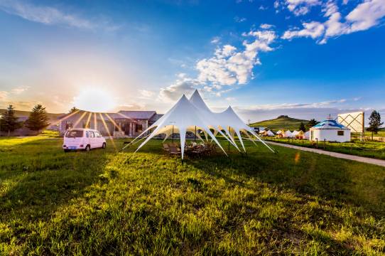 乌兰布统草原乌兰野宿地处乌兰布统草原腹地(五彩山风景区内),周边有影视基地,紧邻草原影视大片拍摄地,步行可达小野鸭湖,达红松湖,开车约10分钟可到达五彩山风景区观景台,整个酒店大院都被大草原环抱着,真正的住在草原里,夜晚抬头即是星空。 酒店是原老二连部队大院经过修建成为乌兰野宿酒店,酒店有双床标准间、大床房、家庭套房、商务套房、蒙古包、舒适榻榻米、露营帐篷等房间。客房有型、有意、有净,窗外有形、有忆、有境。 酒店的餐厅有家常菜、蒙餐、烤羊、烤羊排、烤羊腿、蒙派火锅、烧烤,可以同时容纳200余人用餐;院内有露营地、超市、咖啡厅、秋千、篝火、烟花、舞台音乐放映;这里还提供棋牌、足球、风筝、射箭等各种娱乐项目服务,是度假的上佳之选。如果可以, 请为自己放缓脚步,在草原享受这难得的慢时光;