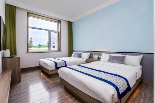 房间很干净,在草原的景区内,真的很棒,设施特别齐全,什么都有。老板的咖啡厅也很温馨。门口也有骑马的地方,价格公道。特别推荐,其次,前台小姐姐也特别热情。民宿有篝火,有表演。感受到了家的感觉!最重要的一点是。。。位置特别好,景色很美
