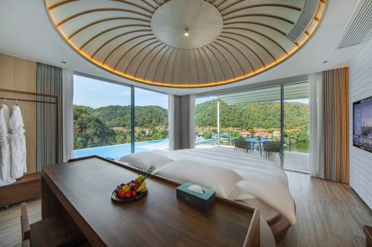 酒店依山傍水,风景优美!酒店内设计别致独特,配备了私人泳池,孩子们玩得不亦乐乎!房间整洁干净舒适有五星标准!酒店的越野车刺激好玩,而且离森林漂流很近非常方便,特别为管家式服务点赞👍管家冼先去响应迅速、有求必应,客气热情,还会再去😀