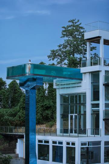 度假村建造了共208个户外泳池,每栋别墅2楼以上套房均自带私家独立泳池,其中度假村巨资打造的悬空高度达33米的户外玻璃泳池是亚洲首创,徜徉其间的你可以体会到在山谷上方飞翔的感觉,悬空泳池的下方是酒吧和棋牌房,适合举办泳池派对,私人酒会等活动,此外,悬泳度假村还设有山林越野车、湖畔烧烤吧、岩壁瀑降、山林高尔夫挥杆练习场、野趣垂钓、水上桨板、水上婚礼舞台等新颖高端的设施配套。与户外生活方式多样性的结合,打造莫干山独特的度假体验。