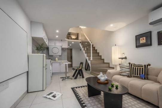 房间很干净,一百多能订到这么好的loft公寓真的是性价比超高!一楼可以投屏看电视剧,二楼有两张大床,非常适合朋友三四个一起出来玩住这里😄