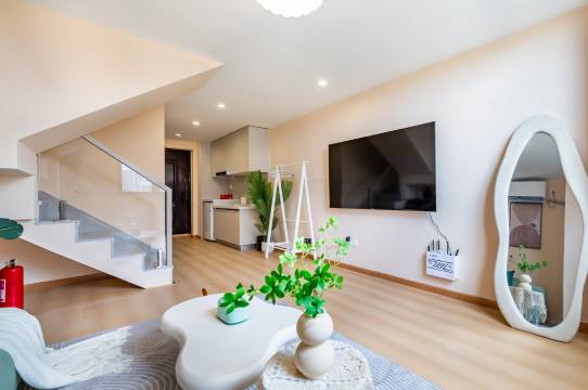 酒店位置便利,距离青岛北站距离不远,中转火车可以选择在这里休息,房间是loft公寓,上下两层,也适合家人出行居住。