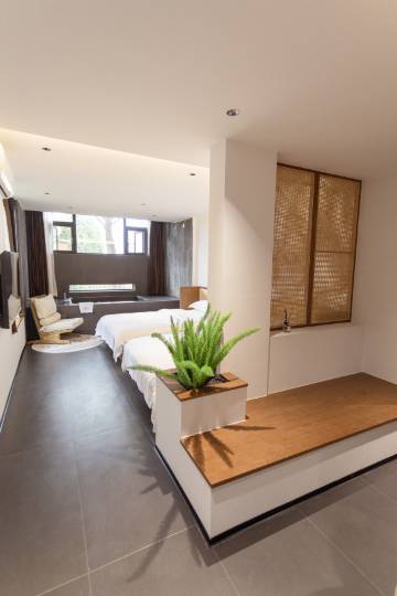 民宿位于弥勒市中心,偏离喧闹区,环境清幽宁静,毗邻著名景点湖泉生态公园,红河水乡公园等。出门可看人间烟火,进门可享静谧时光。无忧度假,给心灵一个栖息的地方。弥勒糖舍温泉墅度假民宿,这是一个用心承载着梦想和生活的民宿。外部宅院白青砖黛瓦,内部简约格调高雅。老板亲自设计使得每间房间叠层而上,田园,湖景,炊烟,宛若一幅山水画,返璞归真,锁住时光。而且每一个房间都有天然温泉泡池,让每一位来宾在客房里就可以享受到被大自然呵护的温暖。